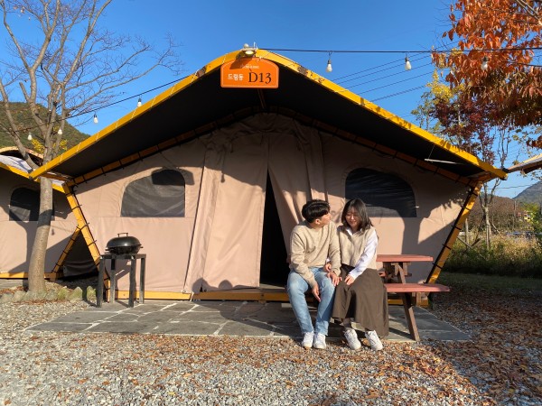 제 첫 글램핑으로 선택한 공주 파크오브글램핑장! 사진으로 봤을때도 너무 이뻤는데 와서보니 더 예쁘고 방도 너무 커서 맘에 쏙들어요>< 날씨도 너무 좋고 지금 단풍피는 계절이라 눈이 즐거웠어요~! 방도 따듯하고 분위기 최고>< 가성비 대박이네요 재방문의사 20000%!!!